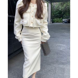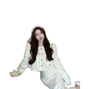 小香名媛风长袖外套女秋季新款韩版气质感短款开衫上衣两件套