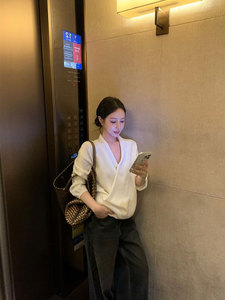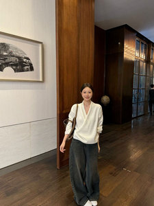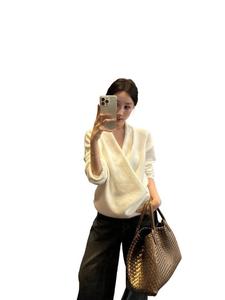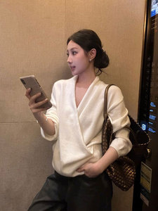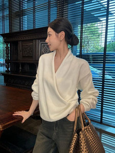 气质温柔风设计感交叉V领针织衫女2025新款修身减龄百搭长袖上衣