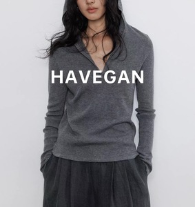 与间HAVEGAN/秋季连帽羊毛长袖针织衫女打底纯色慵懒弹力休闲上衣