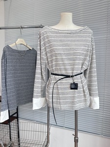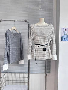 法式撞色条纹拼接圆领长袖T恤女秋季2025减龄收腰遮肚子显瘦上衣