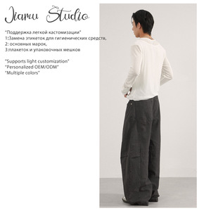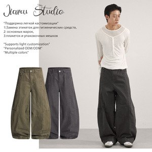 JIAMU美式高街简约拼接baggy中性百搭垂感宽松阔腿弯刀休闲裤男女
