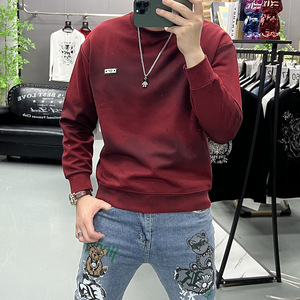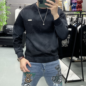 2025秋冬季新款长袖t恤男款内搭打底衫套头卫衣扎染圆领时尚上衣