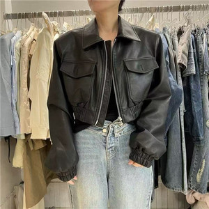 黑色高级感秋季新款设计感宽松显瘦翻领休闲短款小皮衣外套pu夹克