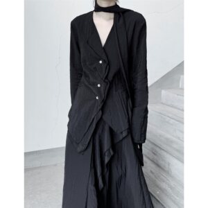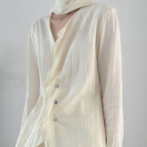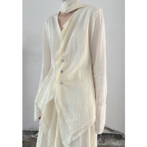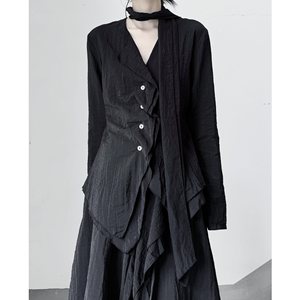 浮木兮/清冷感2025年春秋季新款套装领衬衫小众不规则单排扣上衣