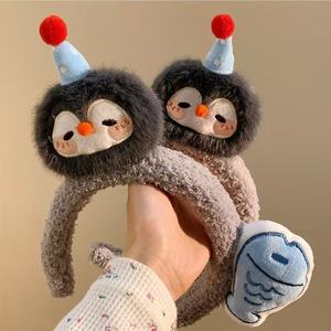 可爱毛绒绒企鹅小鱼发箍女2025新款洗脸头箍敷面膜少女心发卡发饰