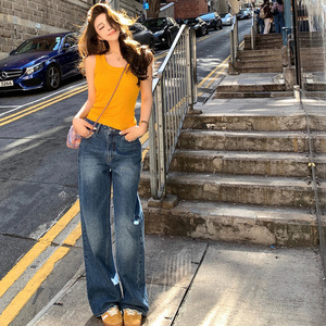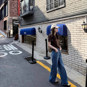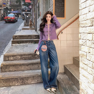 2025年秋季新款大码显瘦阔腿裤梨型身材胖mm高腰水洗牛仔裤