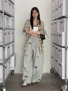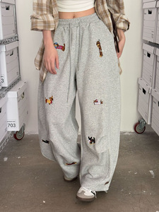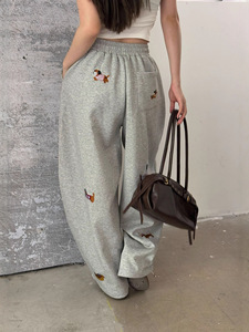 ME KAKAMEE十三行秋卡通腊肠狗刺绣抽绳宽松显瘦弯刀休闲裤 A2862
