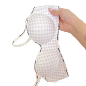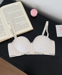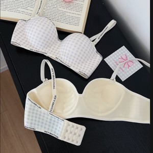 跨境新款格子聚拢显大无痕内衣小胸手掌杯字母肩带透气无钢圈文胸