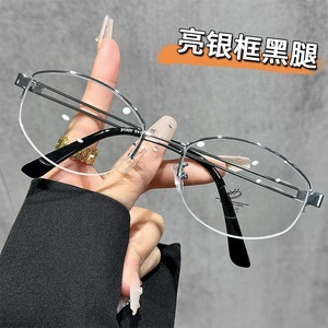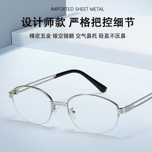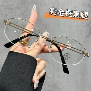 复古老钱风金丝半框眼镜女近视可配度数金属椭圆框防蓝光平光眼镜
