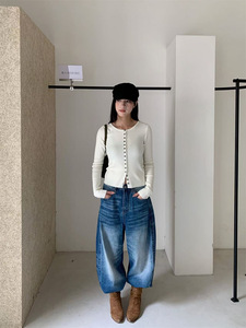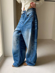 誉一新款2025秋季美式抓纹弯刀牛仔裤女刺绣后袋阔腿裤女hc1361