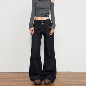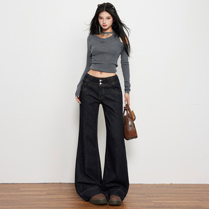 美式街头复古辣妹微喇牛仔裤女低腰不贴腿修身显瘦百搭拖地喇叭裤