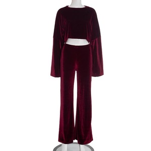 三湖连江J25ST280欧美女装秋季新款休闲天鹅绒 A字衬衫裤子套装女