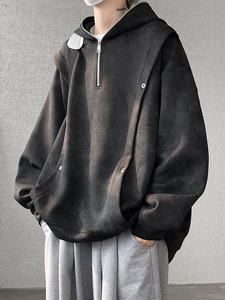 NASA半拉链假两件扎染连帽卫衣男春秋季休闲宽松2025新款美式潮牌