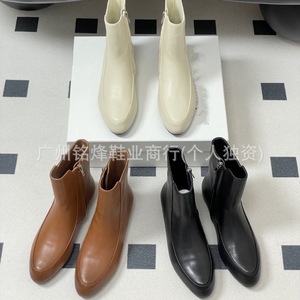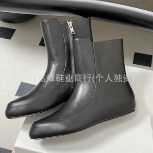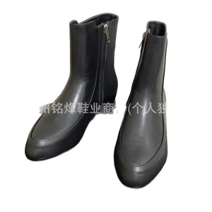 高版本~真皮内增高复古平底短靴女2025新款秋冬单靴瘦瘦靴马丁靴