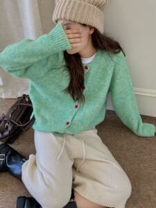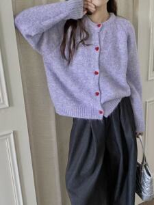 韩系简约百搭爱心扣软糯针织开衫女2025秋冬新款宽松显瘦毛衣外套