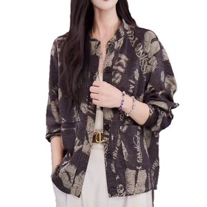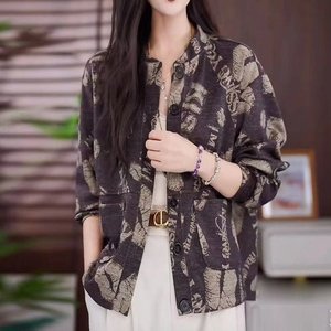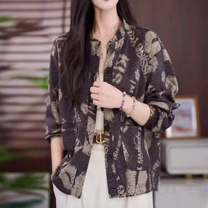 一件代发直播爆款妈妈女装印花开衫2025春秋季款长袖衬衫休闲上衣