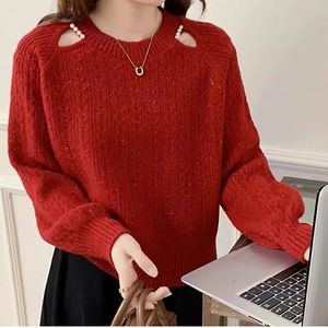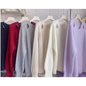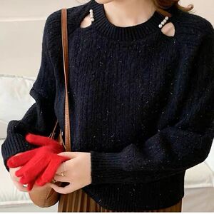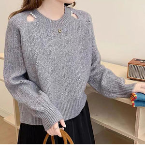 欧洲站2025冬季新款韩版气质Polo领牛仔拼接针织衫假两件毛衣女装
