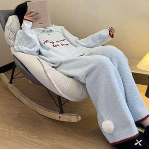 日系少女半边绒睡衣女款冬季2025新款大码宽松加厚保暖家居服套装