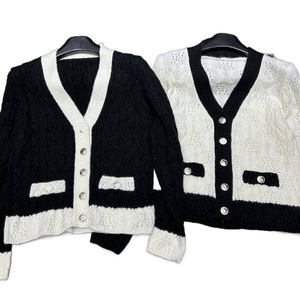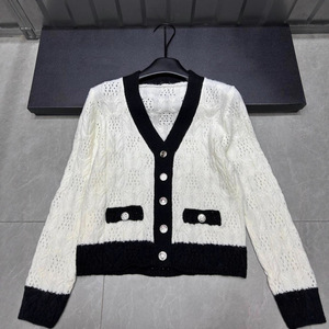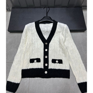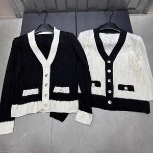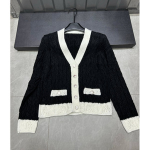 25秋季新款香家logo纽扣撞色针织长袖单排扣V领开衫宽松百搭毛衣