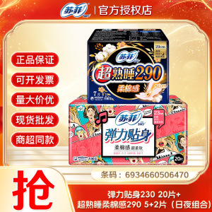 苏菲卫生巾绵柔超熟睡290超长夜用420随心翻350姨妈巾整箱批发
