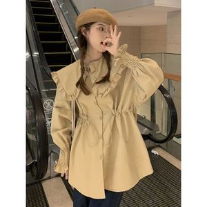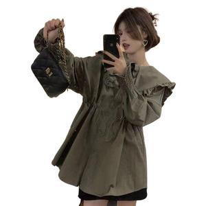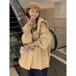 大码胖mm娃娃领泡泡袖衬衫遮肉显瘦日系洋气减龄百搭气质收腰衬衣