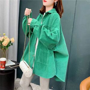灯芯绒衬衫女2025春秋设计感小众宽松长袖港味上衣中长款衬衣外套