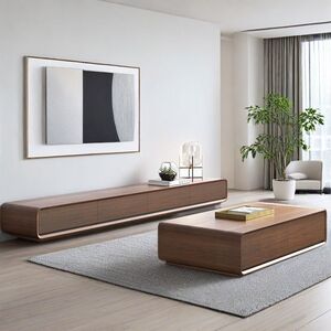 北欧风橡胶木实木落地电视柜茶几柜现代简约客厅电柜组合无需安装