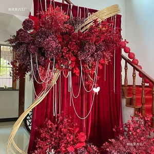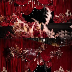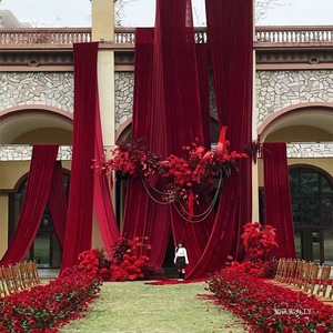 婚庆金丝绒装饰纱幔背景背景布幔宝宝周岁订婚背景纱幔红色布置