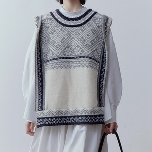 FUSS 奇异马戏团_多种穿法_感蓝白灰三色费尔岛背心简约百搭