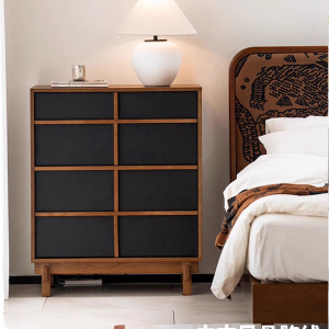 中古风实木斗柜靠墙收纳柜客厅玄关柜岩板储物抽屉柜卧室床尾柜