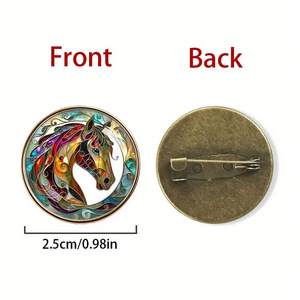 跨境新品生肖马彩绘滴胶圆形个性时尚潮流合金徽章衣服包包配饰