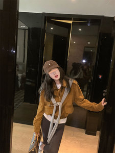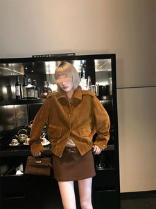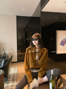 区区欧阳仿牛皮皮衣外套女秋季新款小个子复古短款翻领夹克