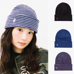 韩国秋冬新款螺旋星星刺绣条纹复古双层针织圆顶冷帽保暖毛线帽男