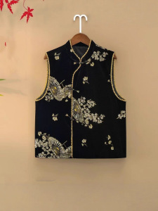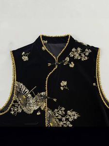 真丝丝绒手工钉珠盘扣开衫马甲文艺百搭新品新中式国风气质上衣坎