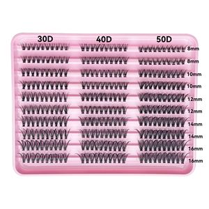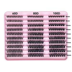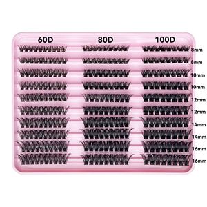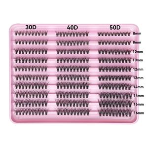 欧美跨境大容量热熔朵毛分段自嫁接炸毛假睫毛浓密卷翘D曲8-16mm