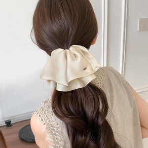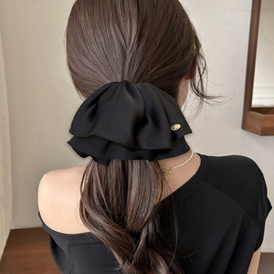 发量多大号裙摆抓夹女秋季高级感缎面双层褶皱低马尾半扎发夹头饰