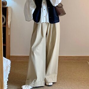 韩系甜美时尚气质复古牛仔背心马甲+刺绣衬衫+宽松阔腿裤三件套装