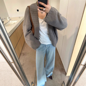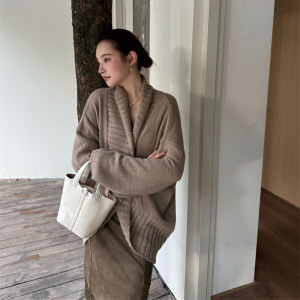 【实拍】翻领毛衣外套女气质慵懒风开衫宽松针织衫春秋羊毛上衣