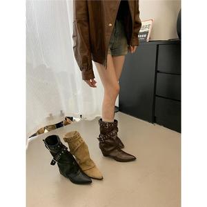 美式辣妹皮带扣裤管靴短筒靴女靴2025早秋新款小众设计短靴西部靴