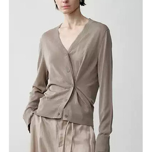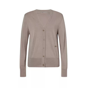 【玛丝定单】秋季新款2025单排扣沙丘色V领针织开衫女绵羊毛上衣