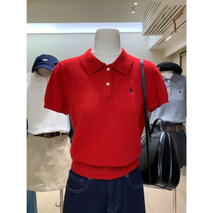老钱风经典小标刺绣全羊毛针织polo衫修身正肩版显瘦秋季短袖毛衣