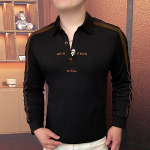 欧洲站男士拼接刺绣翻领长袖T恤翻领半拉链高档轻奢卫衣修身上衣