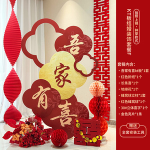 婚房布置套装床头装饰蝴蝶拉花婚礼结婚新房男女方卧室喜字背景墙