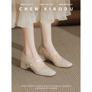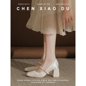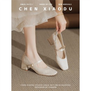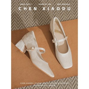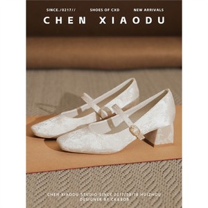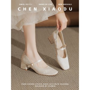 新中式白色粗跟旗袍鞋不累脚中跟伴娘鞋婚鞋新娘鞋高跟单鞋女春夏