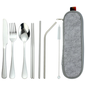 跨境专供不锈钢吸管套装户外西餐刀叉勺筷子便携式餐具包厂家批发