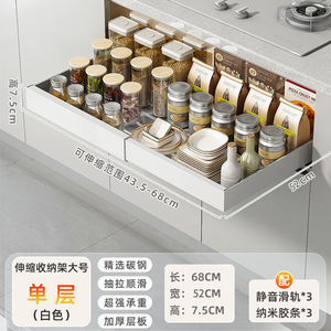 可伸缩橱柜内抽屉置物架下水槽调料餐具储物柜式抽拉收纳篮筐盘架