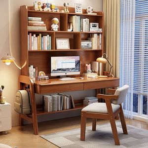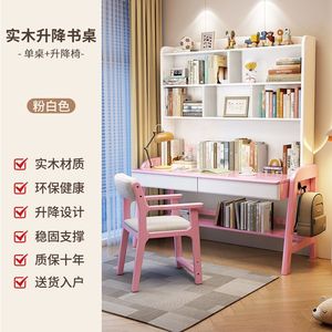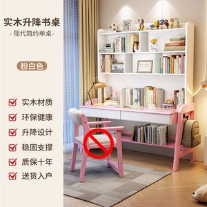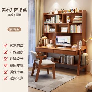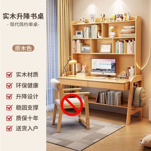 实木书桌书架可升降一体式儿童学习桌卧室简约家用中小学生写字桌