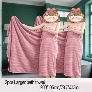 跨境贴标105*200大尺寸浴巾成人家用洗澡裹巾条纹经编珊瑚绒浴巾