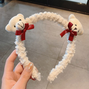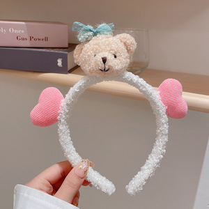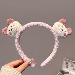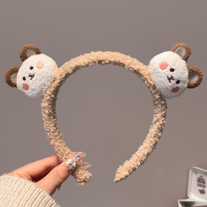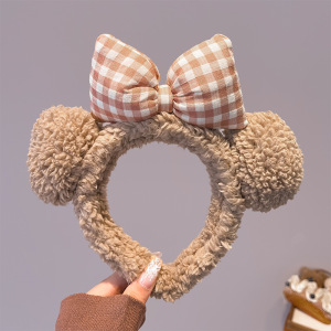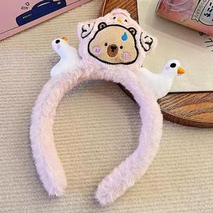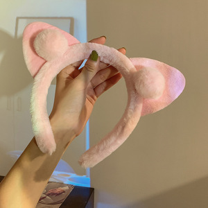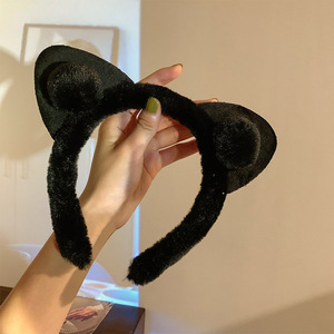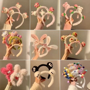 洗脸化妆毛绒头箍发箍卡通可爱猫咪KT小熊耳朵豹纹女卡通发饰摆摊