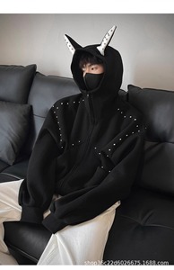美式高街情侣卫衣男秋季潮牌铆钉耳朵连帽夹克小众设计感开衫外套